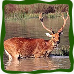 However, if one animal species were to represent Kanha, it would probably be the barasingha, or the swamp deer. The barasinghas at Kanha are unique, being the hard ground variety, which populate the large open tracts of grass amidst the forests of teak and bamboo. Twenty years ago, the barasingha was faced with extinction but some desperate measures including the fencing-off of some animals helped save them and again the air in Kanha bugle with their rutting calls. |